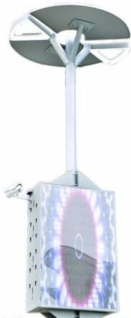 和日常路灯的长脖子大脑袋不同,这款全球首发的智能路灯是柱状结构,头顶着圆圆的LED显示管,笔直挺拔的身躯上竖立着一块四四方方的胸肌,靠近“胸肌”的部位,还有个“小眼睛”。