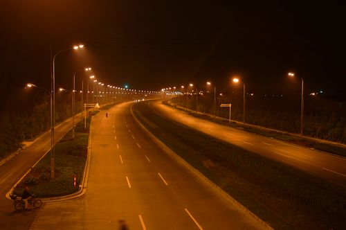 ⑵六车道以上干道上的路灯采用双灯具,下半夜关闭同一灯具内的光源。